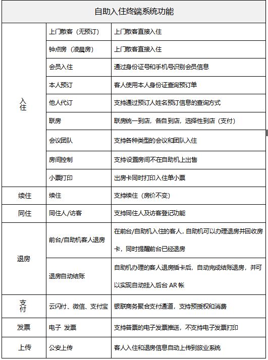 酒店自助入住机是一款硬件和软件相结合的智能产品,客人通过自助入住机快速办理入住登记手续,实现了身份验证、PMS登记、在线支付、制作房卡和公安上传一体化操作,各系统的无缝对接。