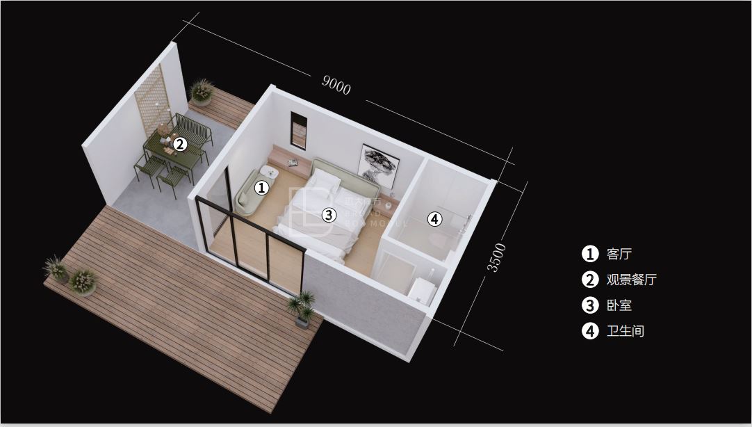1室1厅1卫 适用人群:Z时代二人世界 0建筑垃圾、1天入住,N场景适配、保温\隔热\防潮\耐高温\ 可移动,高硅基复合材料,航天领域用到的自清洁材料,高科技,品质保证